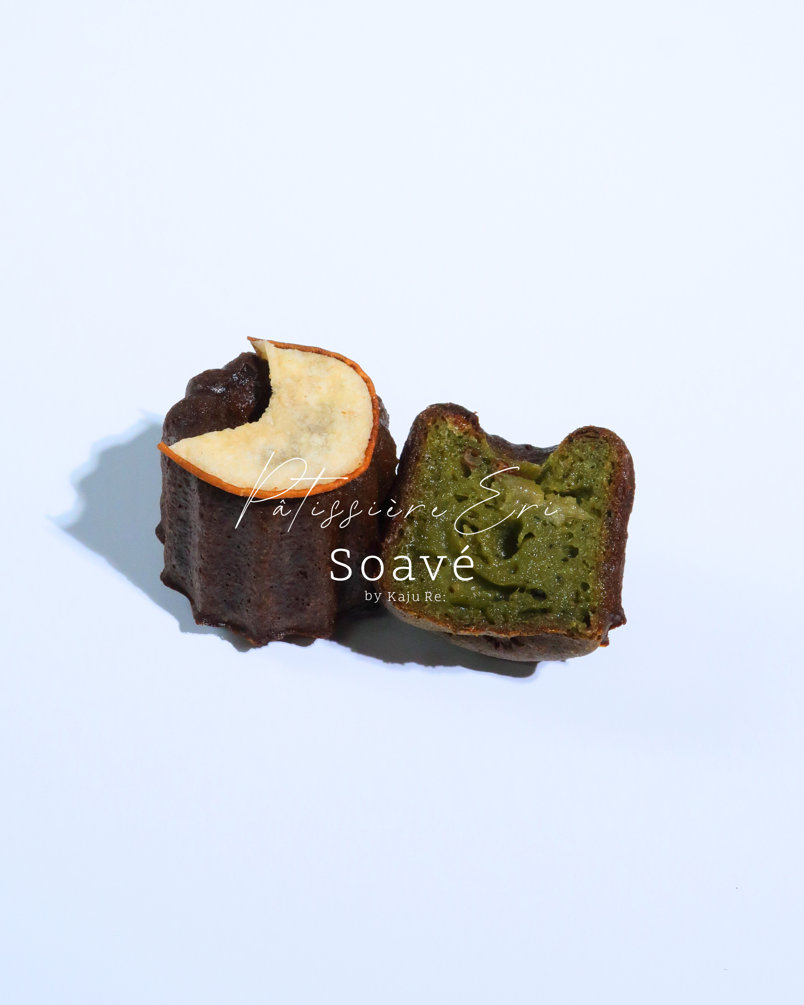 慶応三年創業・金沢の老舗「酒見銘茶店」の抹茶を贅沢に使った生地に、加賀奥谷のドライ梨とりんごをたっぷり。和の香りと果実の甘みが調和した、上品な一品です。